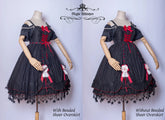Dress option includes: a jumper skirt dress, a pair of detachable sleeves, a pair of rosettes, and a pair of shoulder pearl chain.